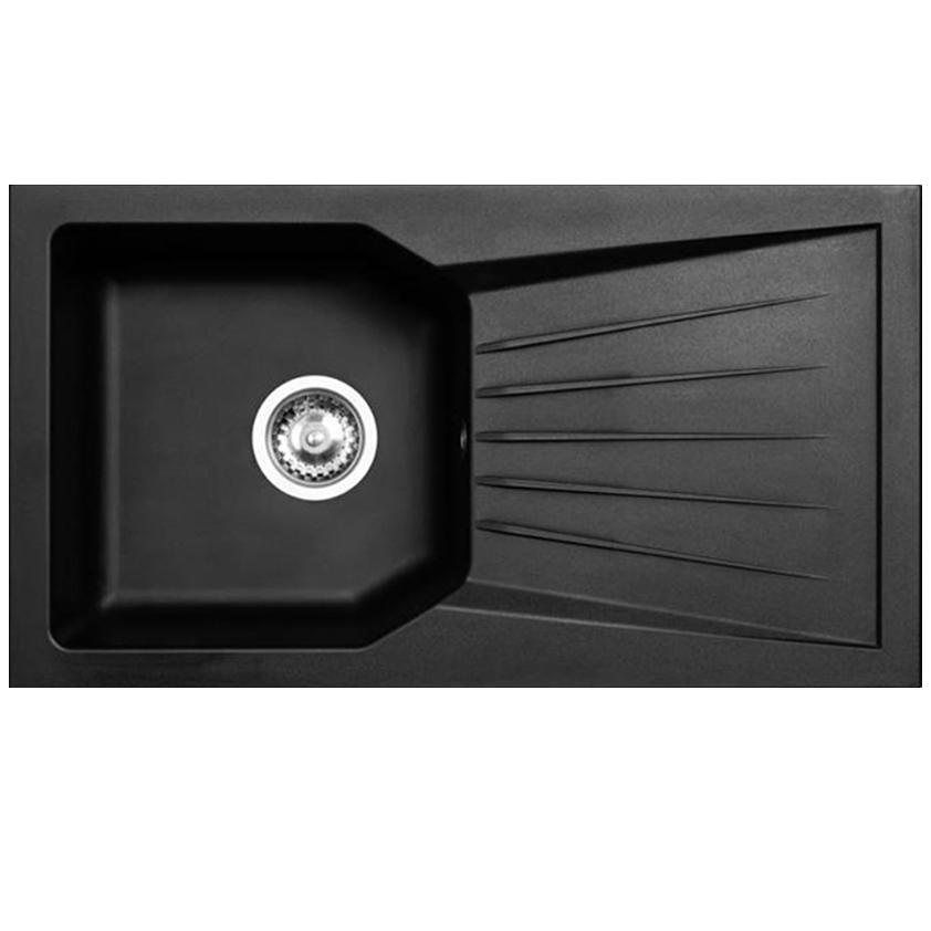 Kunststof door en door Zwarte grote spoelbak 70x40cm onderbouw opbouw en vlakbouw met zwart plug 1208956401