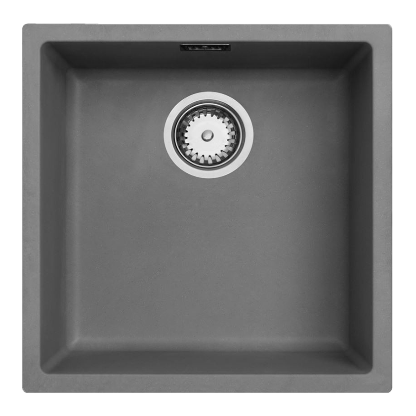Kunstof door en door beton grijze spoelbak 40x40cm onderbouw opbouw en vlakbouw met rvs plug 1208956393
