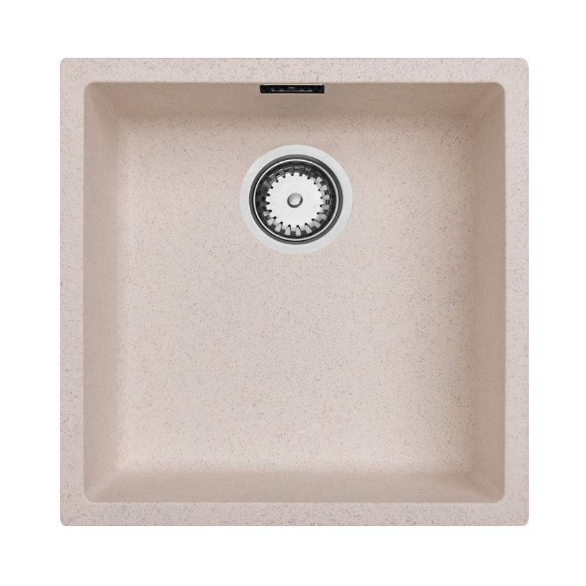 Kunstof door en door zand creme spoelbak 40x40cm onderbouw opbouw en vlakbouw met rvs plug 1208956394