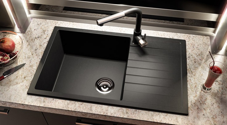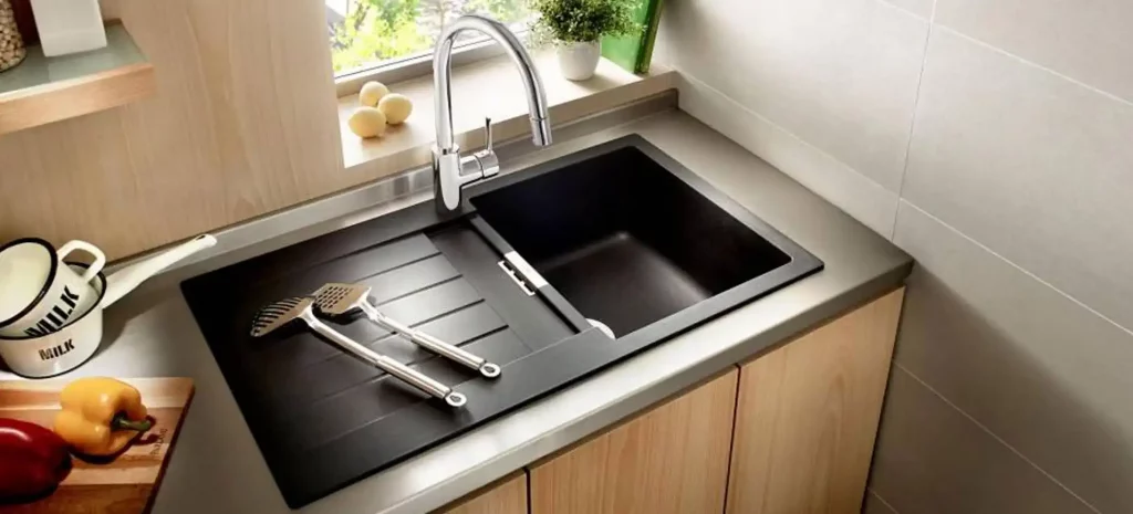 Ausmann Fibre spoelbak zwart omkeerbaar met afdruip opbouw 86×50 cm -